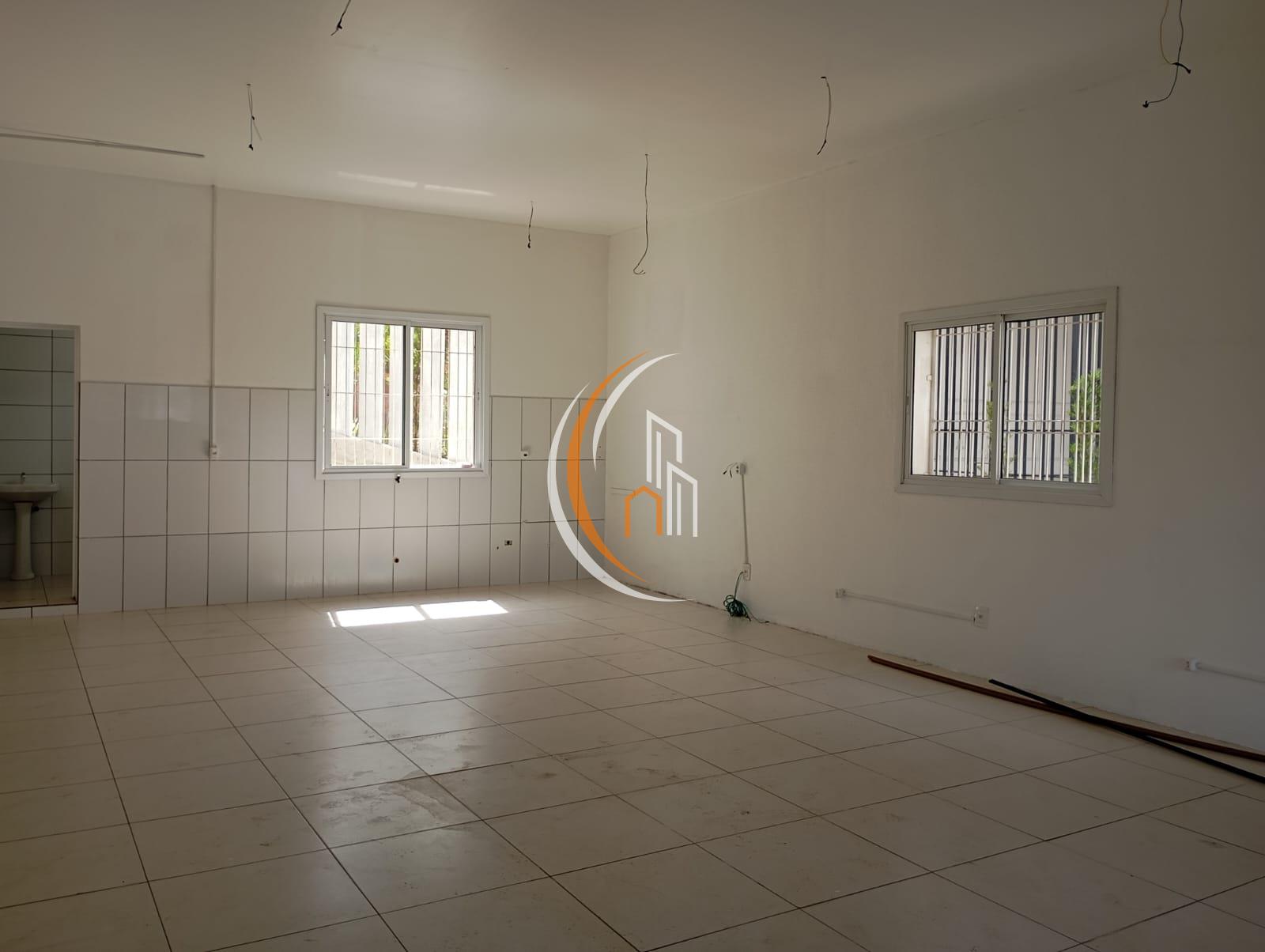 Excelente sala comercial térrea de 60 m² com piso cerâmico, banheiro e espaço com hidráulica pronta para copa.